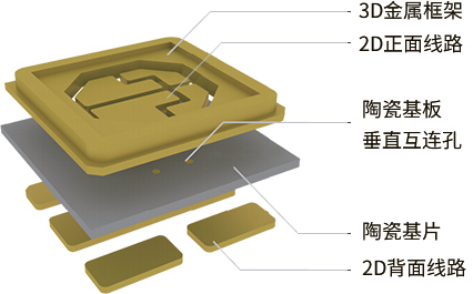 薄膜電路陶瓷封裝基板是一種通過磁控濺射薄膜金屬化與電鍍制程的技術:即根據(jù)應用需要,在高導熱的陶瓷基體上,采用薄膜金屬化及影像轉(zhuǎn)移方式制作2D金屬線路,然后采用TCV(Through Ceramic Via) 技術形成雙面布線間的垂直互連,最后采用堆疊技術獲得與陶瓷基體結合緊密的一體式3D金屬框架。基于薄膜電路工藝,通過磁控濺射實現(xiàn)陶瓷表面金屬化,通過電鍍實現(xiàn)銅層和金成的厚度大于10微米以上即DPC(DirectPlateCopper-直接鍍銅基板)。